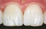 - Mitte: Verblendschale aus Keramik auf einer Metallkrone
